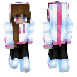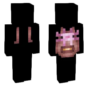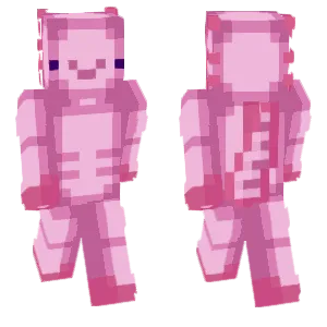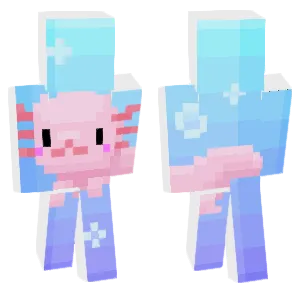 Axolotls are Minecraft's famously cute aquatic allies: bucketable companions that regenerate, play-fight underwater, and come in multiple naturalistic color variants. Axolotl-themed player skins translate those big external gills, rounded snouts, and friendly eyes onto the humanoid model, often with pastel-forward palettes and soft edge shading that feels closer to plush toy than to gritty realism.