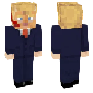 Donald Trump skins have become one of the most popular political figure skins in Minecraft. Known for his distinctive appearance—the iconic blonde swept-back hair, business suit with red tie, and confident expression—Trump skins are instantly recognizable on any server. Whether you're building political parodies, recreating historical moments, or just want a memorable character skin, Donald Trump designs offer a unique option that stands out among the typical fantasy and gaming character skins.
