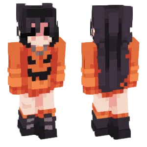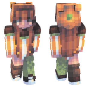 Pumpkin-themed Minecraft skins celebrate autumn’s most iconic gourd: carved grin faces, orange segment shading, leafy stems, and cozy knitwear dyed harvest colors. The archetype is inherently seasonal for many players—October minigames, spooky carnival maps, and pumpkin farm bases—but it also works year-round for players who enjoy cottagecore aesthetics and food-motif humor.