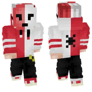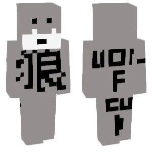 Wolves in Minecraft are optional companions: neutral animals that become loyal after bones, fight beside you with melee attacks, and show their mood through tail height and eye color shifts when tamed. Wolf-themed player skins channel that survival fantasy—gray fur texture, white muzzle markings, upright ears suggested on the head texture, and the iconic red collar pixel band many players associate with a trusted pet.