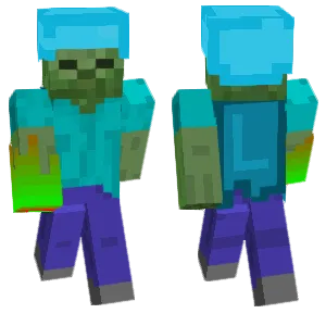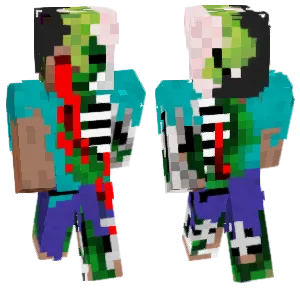 Browse Zombie Minecraft skins featuring teal undead tones, torn clothes, glowing eyes, and mob-inspired outfits. Download zombie skins for Java and Bedrock—perfect for survival roleplay, mob cosplay, and PvP factions.