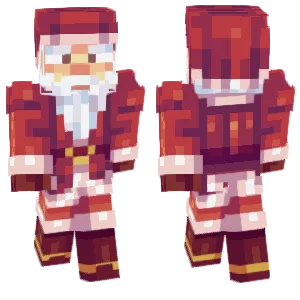 Santa Claus, the most iconic Christmas figure in Minecraft skins, draws from multiple sources: the historical Saint Nicholas (a 4th-century Greek bishop known for generosity), Dutch Sinterklaas traditions, and the modern American image popularized by Coca-Cola advertisements in the 1930s. The result is the familiar red-suited, white-bearded figure that dominates Christmas skin searches.