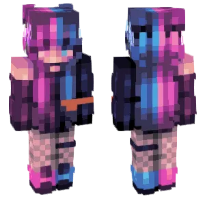 • Purple Splash Motifs: The mob's robe uses vivid purple patches; on player skins, controlled purple shapes on sleeves or skirt hems echo the source without looking like random noise.